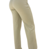 Pantalón largo de tiro muy alto, confeccionado en un tejido ligero con un acabado sutilmente satinado o texturizado, en un color verde salvia o caqui claro. La cintura es ancha y alta, ajustándose a la figura y cerrando con un solo botón en la parte superior. Presenta un detalle distintivo de cordón cruzado o trenzado a lo largo de las costuras laterales superiores, que añade un toque decorativo. El corte es de bota recta o ligeramente ancha, con caída limpia, y no presenta bolsillos visibles en la parte frontal para mantener una silueta lisa y pulcra.