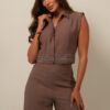 Un set elegante, femenino y lleno de carácter. La camisa sin mangas se destaca por su delicado detalle de bolillo en la perilla inferior y botones forrados que aportan un toque clásico. El pantalón, con silueta fluida, incluye bolillos decorativos en los laterales que realzan su diseño y estilizan la figura. Confeccionado en telas suaves y cómodas, este conjunto es ideal para quienes buscan un look romántico, moderno y con personalidad.