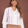 Eleva tu estilo con esta encantadora camisa manga larga, confeccionada en una tela suave, fresca y ligera que garantiza total comodidad. Su diseño incorpora delicados detalles de encaje en los laterales frontales, añadiendo un toque femenino, romántico y sofisticado. Ideal para looks versátiles, desde un outfit casual chic hasta combinaciones más formales.