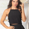 Ideal para un look de noche sofisticado y moderno, combinándola con pantalones de sastre negros de tiro alto y tacones o botines para acentuar la silueta dramática.