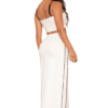 Un set que redefine la elegancia casual con un toque moderno y relajado. Su diseño en tono neutro crea una estética limpia y sofisticada, mientras los delicados contrastes en líneas oscuras estilizan la silueta y aportan un aire contemporáneo. El top tipo bandeau con tirantes finos resalta los hombros y el torso, equilibrándose perfectamente con la falda larga de caída fluida que acompaña cada movimiento con naturalidad.