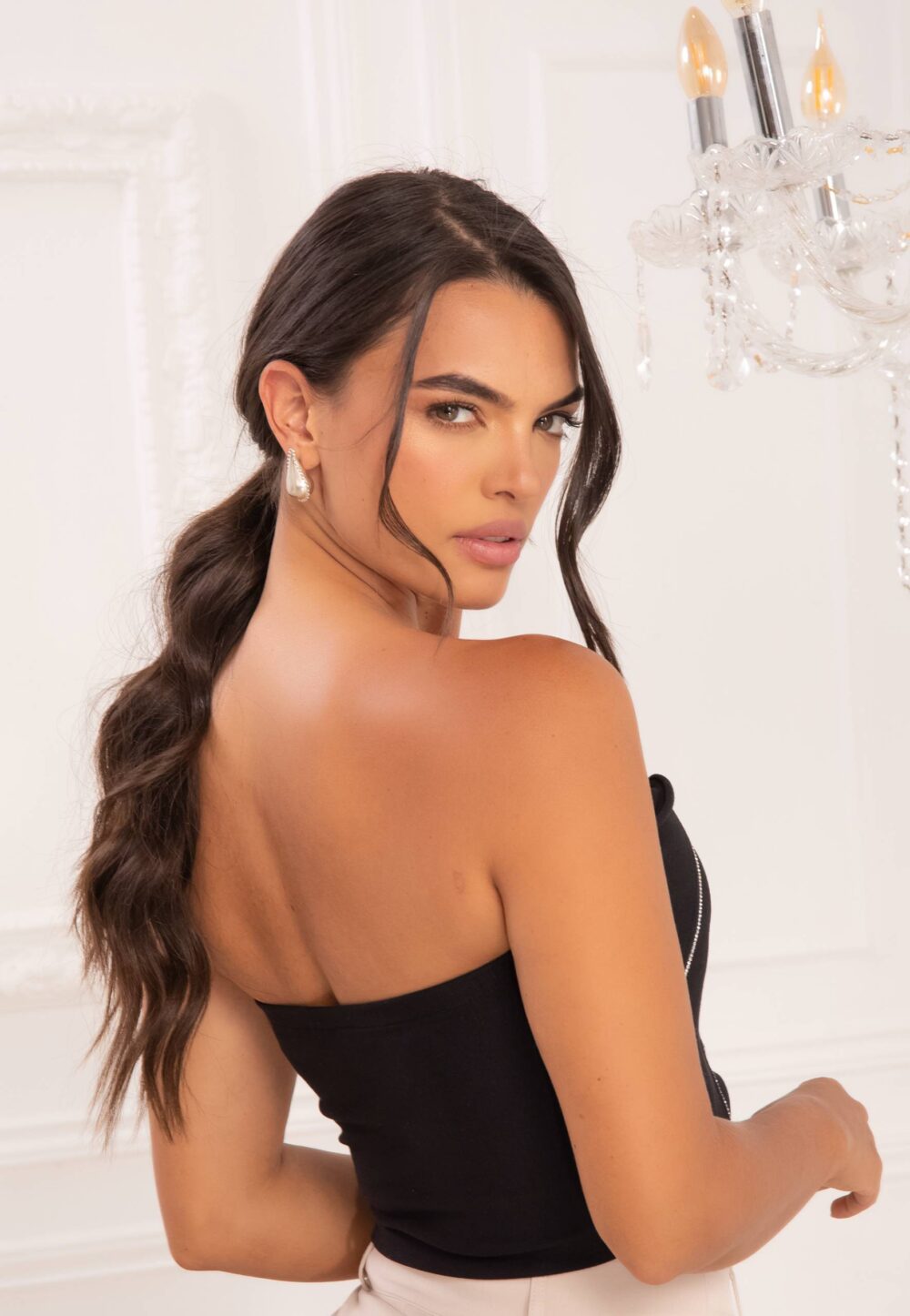 Los detalles brillantes añaden un toque festivo, haciendo que destaques en cualquier celebración. Su diseño elegante y moderno la convierte en la elección ideal para combinar con faldas, pantalones o shorts, creando looks chic y sofisticados.