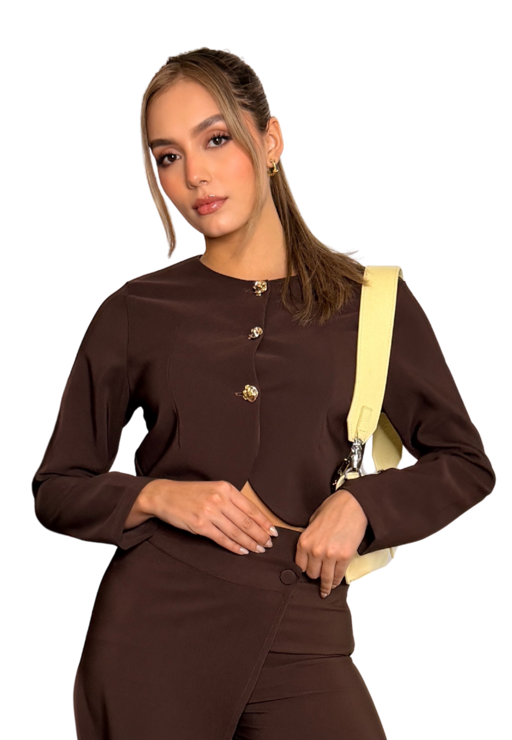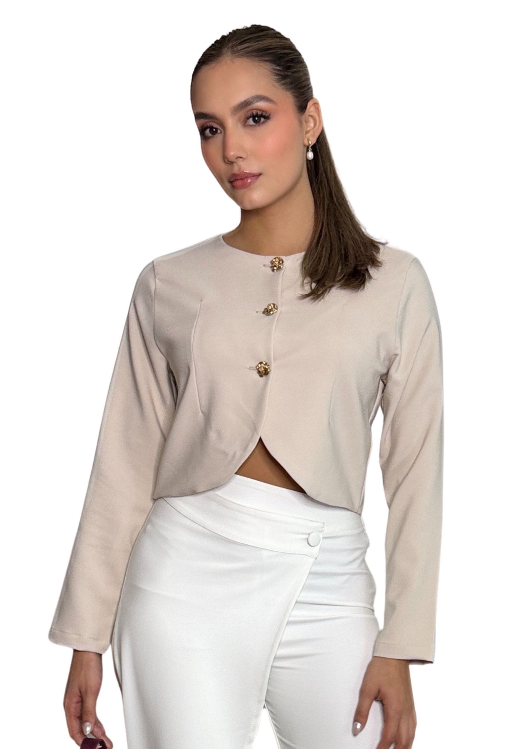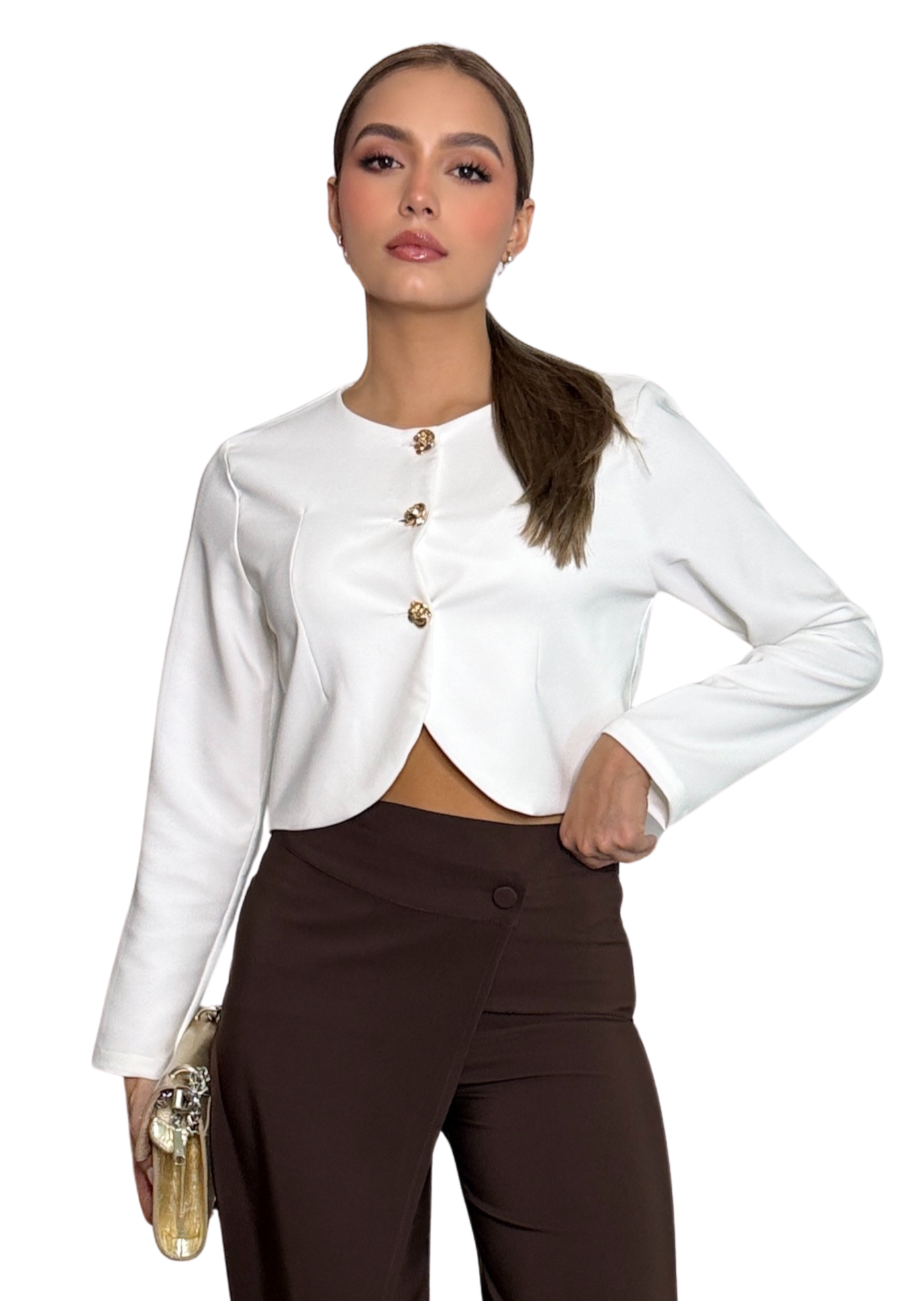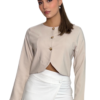 Este mini blazer con botones dorados es una pieza clave para elevar cualquier look. Su silueta pulida, de líneas limpias y proporciones equilibradas, lo convierten en un diseño clásico, atemporal y muy tendencia, ideal para acompañarte en 2025 y 2026.