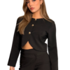 Está pensado para estilizar la figura sin perder comodidad, aportando estructura y elegancia con un fit favorecedor. Los botones dorados añaden un toque sofisticado que eleva el diseño y lo hace perfecto para llevarlo en set con el Montecarlo Pant, creando un total look moderno, femenino y poderoso.