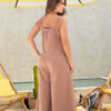 Un enterizo de silueta amplia que combina comodidad y sofisticación. Su diseño de tirantes y caída fluida estiliza la figura, mientras el corte amplio en las piernas aporta movimiento y un look moderno. Una prenda versátil y atemporal, ideal para destacar con elegancia en cualquier ocasión.