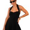 Vestido corto que combina delicadeza y sofisticación en cada detalle. Su escote estructurado y tirantes anchos realzan la parte superior con un aire femenino y elegante, mientras que la falda con caída en A aporta movimiento y una silueta armoniosa que estiliza naturalmente la figura. Su diseño limpio y refinado lo convierte en una pieza atemporal y versátil.