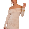Vestido corto que resalta tu silueta con un diseño elegante y seductor. Su escote off shoulder aporta un toque femenino y sofisticado, mientras que las mangas largas y el ajuste ceñido estilizan la figura, creando un look moderno y lleno de actitud. Los sutiles fruncidos le dan movimiento y realzan cada curva con naturalidad.