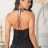 Blusa tipo pañoleta con piedras de brillo y amarre posterior ajustable, perfecta para esta temporada de fin de año.