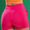 Este hermoso short de tiro alto es ideal para quienes buscan una prenda cómoda y con mucho estilo. Ceñido al cuerpo, realza la figura y define la cintura de forma favorecedora.