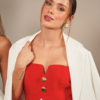 El The Leyre Set es un total look diseñado para realzar tu figura y elevar tu estilo en cualquier ocasión especial. La blusa tipo corset incorpora un herraje interno que brinda estructura y soporte, además de botones dorados en tendencia que añaden un toque elegante y moderno. Su fajón tipo peplum define la cintura y crea un efecto visual que la hace lucir más pequeña, favoreciendo la silueta de manera natural.